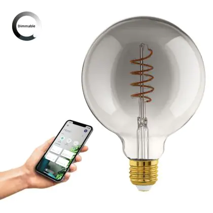 Eglo Connect.Z Smart LED Globe E27 Filament Smokey 4W 150lm - 820 Extra Warm White | Dimmable - Replaces 15W