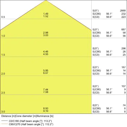 Beam angle of 110°