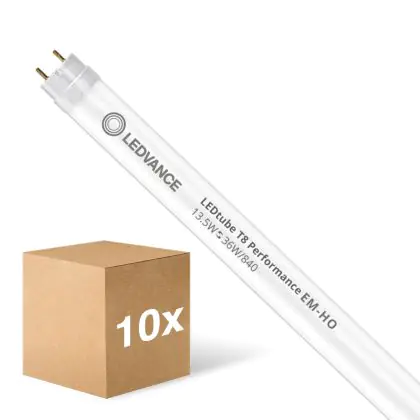 Multipack 10x Ledvance LED Tube T8 Performance (EM/Mains) High Output 13.5W 2100lm - 840 Cool White | 120cm - Replaces 36W