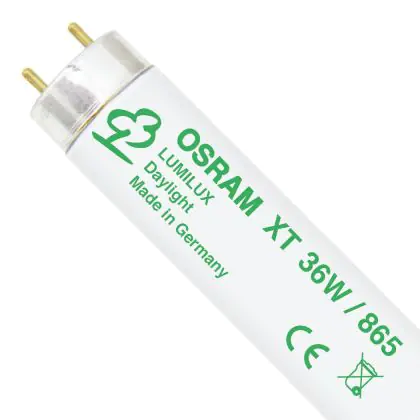 The Osram T8 L 36W/865 XT G13 Daylight are fluorescent tubes endowed with a 36W power and with a G13 socket. They measure 120cm in length. These tubes have an incredibly long life span of 50. 000 hours on average. Their colour rendering is set between 80Ra and 89Ra. Due to their 6500K colour temperature, these tubes assure a "daylight" effect.