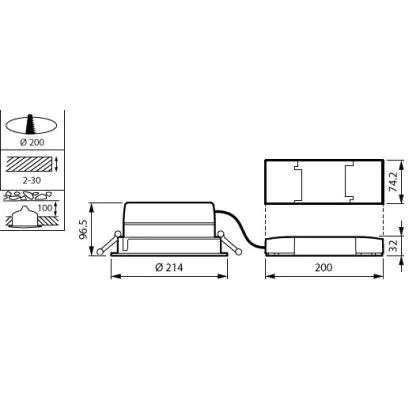 | Cut out (mm) | 200 | |